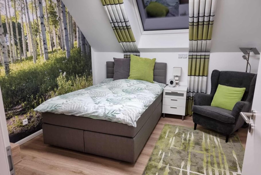 Die Monteur- oder Gästezimmer befinden sich im 1. OG und sind über einen separaten Eingang zu erreichen. Das Haus und die Kurzzeitvermietung wurden im Juli 2021 fertiggestellt und sind technisch auf dem neuesten Stand. Die Lage ist in einer alten und gewachsenen Bergbausiedlung, weit von der Hauptstrasse und somit sehr ruhig gelegen.